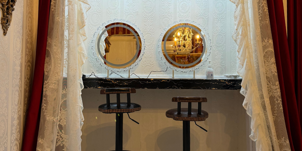 フランス撮影スタジオ GALLERY-O19 LA TERRASSE(ラ・テラス)。池袋駅から徒歩4分、広大な空間に広がるのは、本場フランスの気品漂う撮影舞台。最大の特徴は、周囲をすべて鎧戸で囲った開放的なバルコニーエリアです。都心にいながら柔らかな自然光に包まれた屋外撮影が叶います。さらに、宮殿の控室を彷彿とさせる豪華な準備スペースも完備。アンティークの深みと光が溶け合う、至高の一枚をここで。ただいまキャンペーン中!スタジオレンタル料金がナント半額!